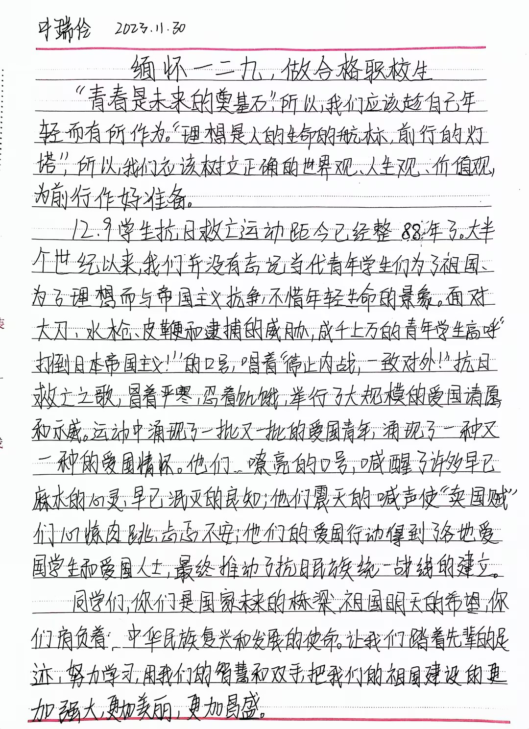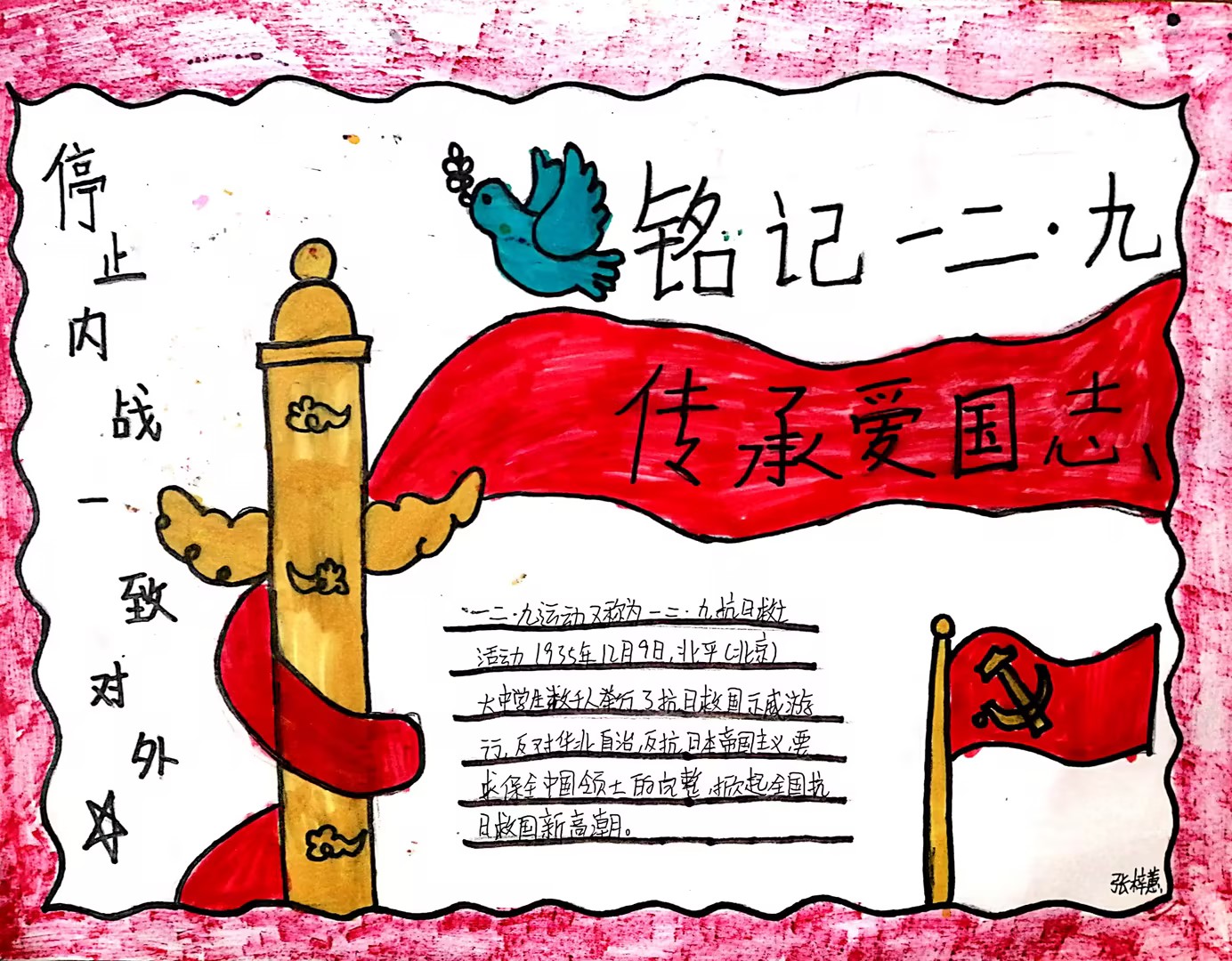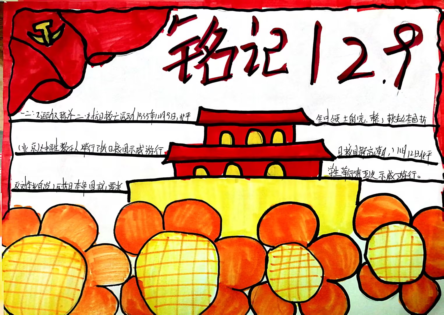学生还通过撰写学习心得、绘制手抄报等形式来纪念“一二•九”爱国运动。