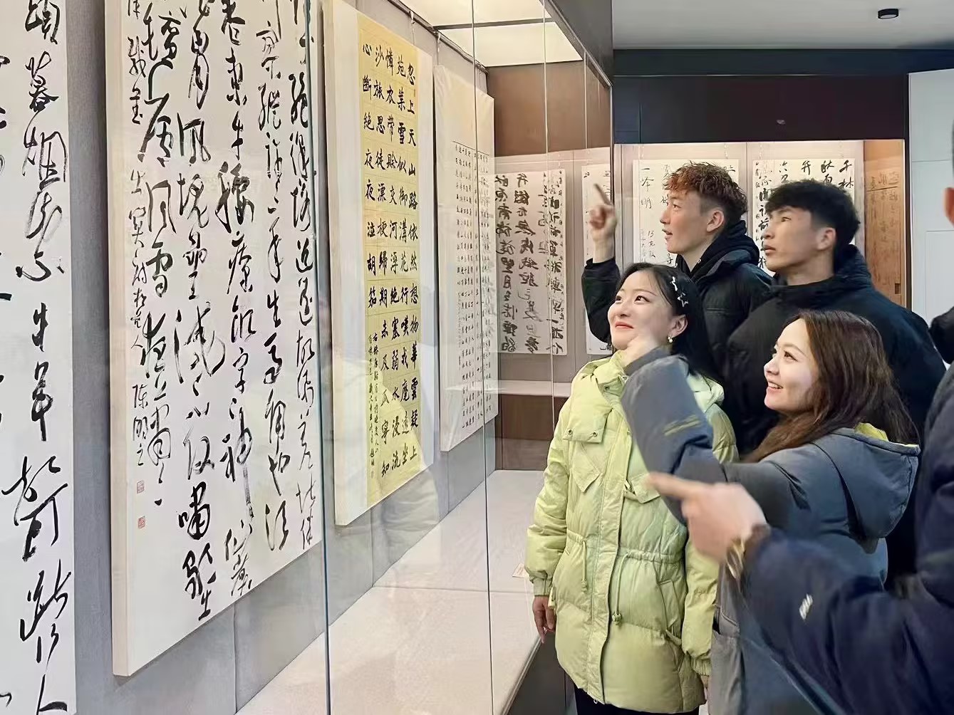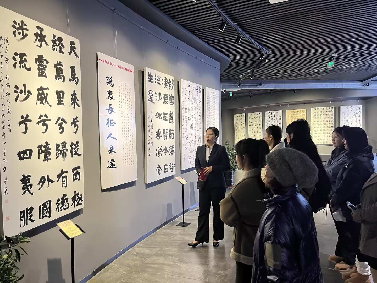 铸牢中华民族共同体意识 推广国家通用语言文字——铁职院教育艺术系师生参观“明月出天山”书法展
