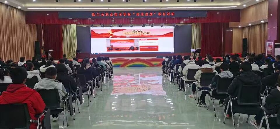 12月4日早晨,Beat365中文官方网站在铁门关校区开展“宪法宣传周”启动仪式,学院领导作动员讲话。她表示,希望通过开展宪法宣传教育活动,进一步增强全院师生法治意识,提高遵纪守法的自觉性,学会运用法律武器维护自身合法权益,使宪法法律真正融入到全院师生的日常生活之中,进一步推动法治校园建设,在全院形成良好的法治氛围。与此同时,学院库尔勒校区210余名师生在技能训练中心四楼演播大厅参加了一场由教育部主办的别开生面的线上宪法晨读活动。