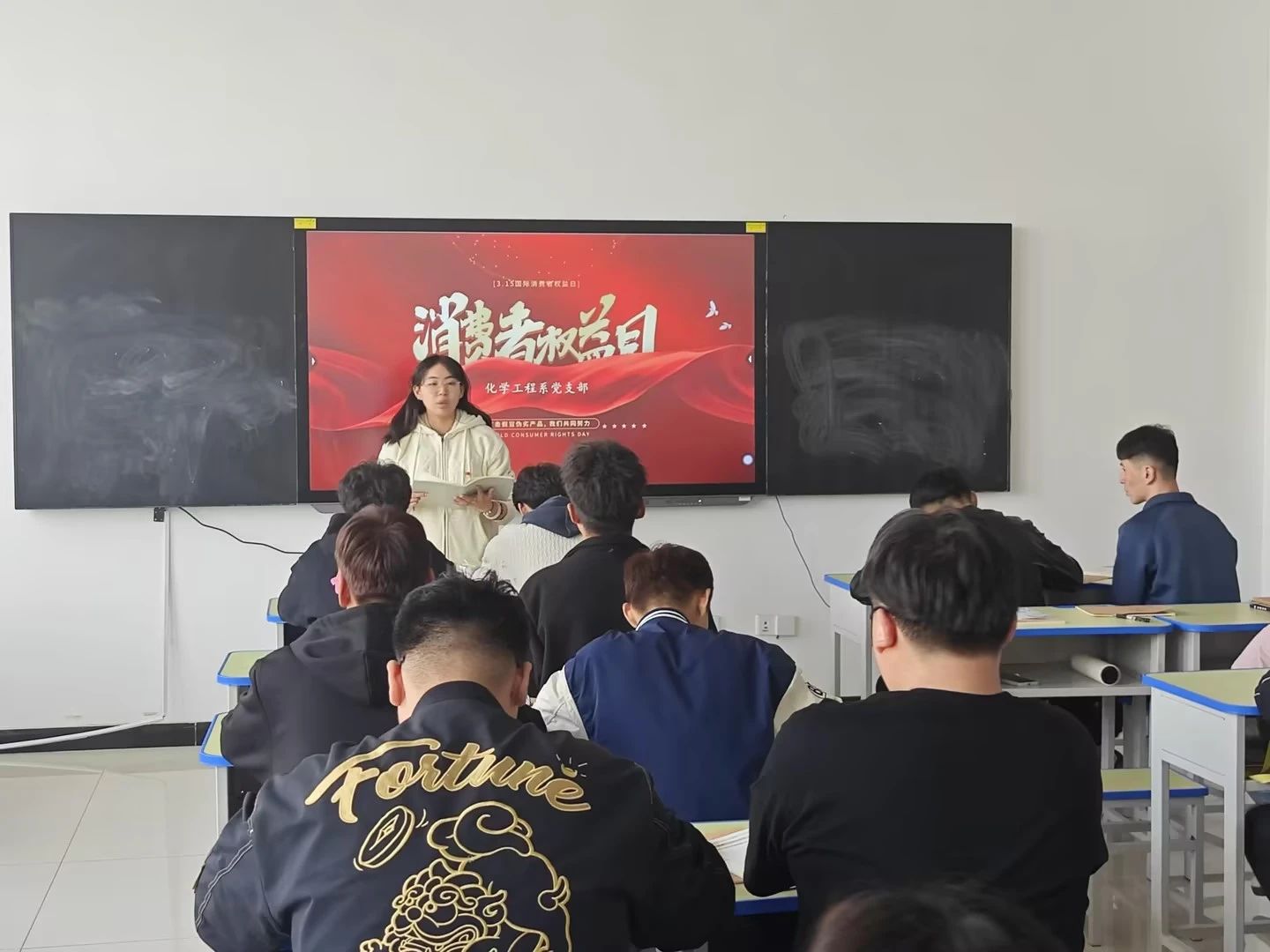 3月13日至14日,Beat365中文官方网站化学工程系党支部党员及学生代表进入班级开展“诚信消费·维权同行”主题宣讲活动,系部全体学生参加。