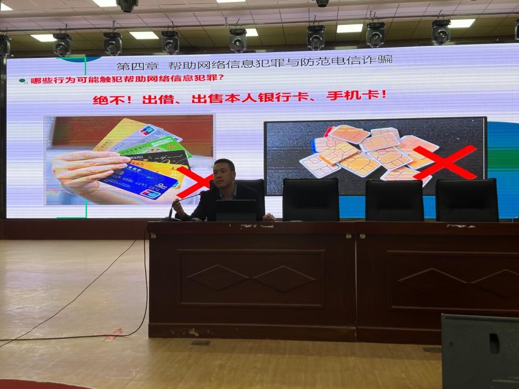 通过详实的案例,律师还为同学们讲述了帮助网络信息犯罪与防范电信诈骗、翻墙行为的法律规定及后果,警示同学们要引以为戒,既不做网络信息犯罪的帮凶,也不做助网络信息犯罪和翻墙的“黑手”。