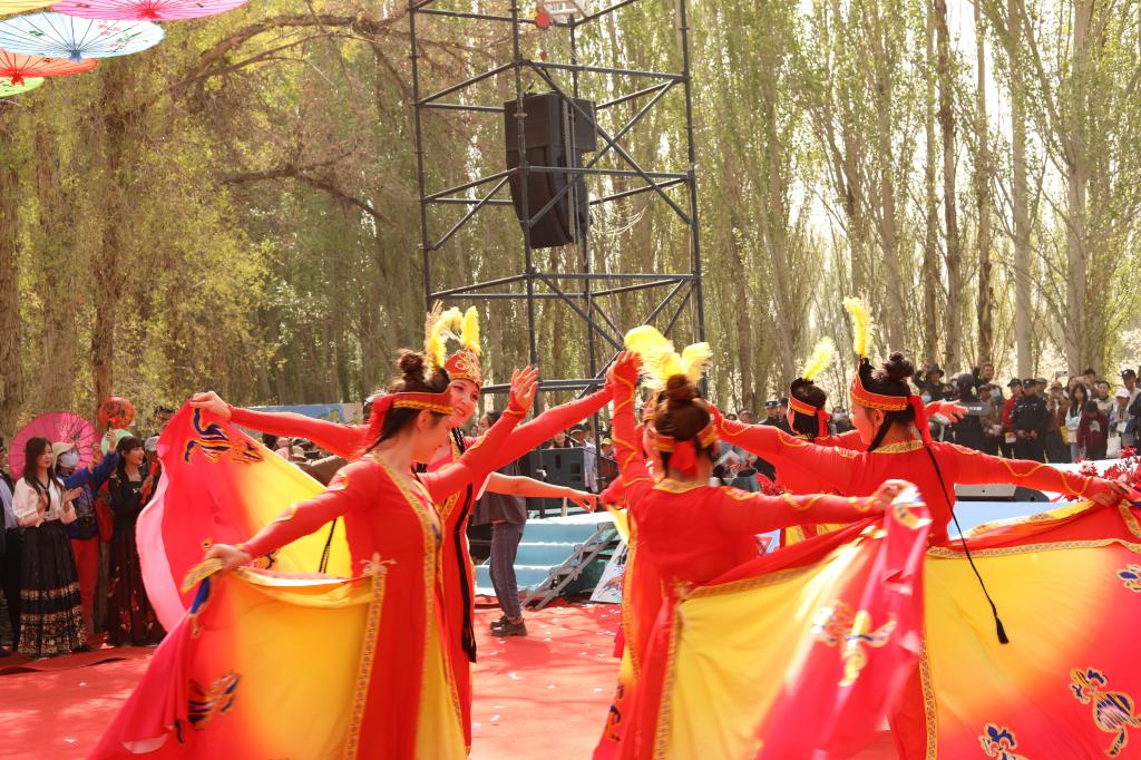 4月12日,第二师铁门关市第三届“香梨小镇”文化旅游活动开幕式中,学院舞蹈团成员为梨花节献上《最好的舞台》和《我心中的那抹红》两只舞蹈。演出学生用飘动的红绸和曼妙的身姿,尽情挥洒汗水,舞出热爱、舞出情怀,让观众感受到不一样的中国红和朝气蓬勃的青春风采。