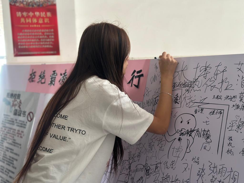 4月10日至4月26日,工作人员在心理沙盘室门口展放“抵制校园霸凌”倡议书,来往的同学们积极参与,并在倡议书上签下自己的姓名。23软件1班的李文龙同学说:“反校园霸凌倡议书非常有意义,我们每个人都应该行动起来,共同抵制校园霸凌,对校园霸凌说‘不’。”