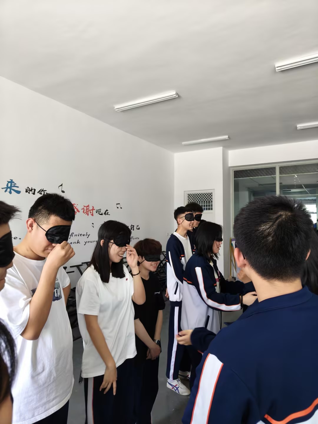 团辅包括三个环节:第一环节为大风吹,通过身体运动减轻心理压力和释放紧张情绪,达到放空自我的目的,“吹风”过程中同学们全力以赴,以浑身的热血战胜了灰色的情绪。第二个环节为达芬奇密码,考验的是班级同学的凝聚力与团队协作能力,同学们根据掌握的线索分析推理。第三个环节为盲人旅行,体验任务为通过触觉识别物体,培养同学们的同理心。以上活动的开展让同学们在互相协作中增进了彼此的交流,促进了感情提升。