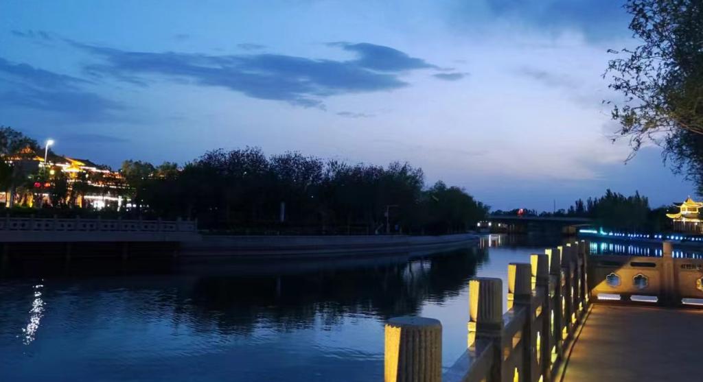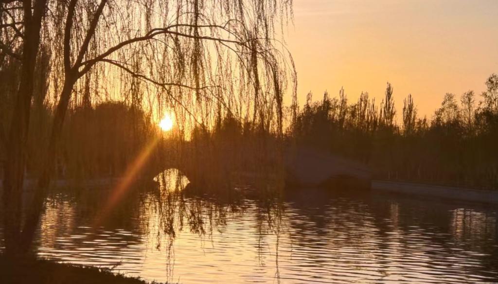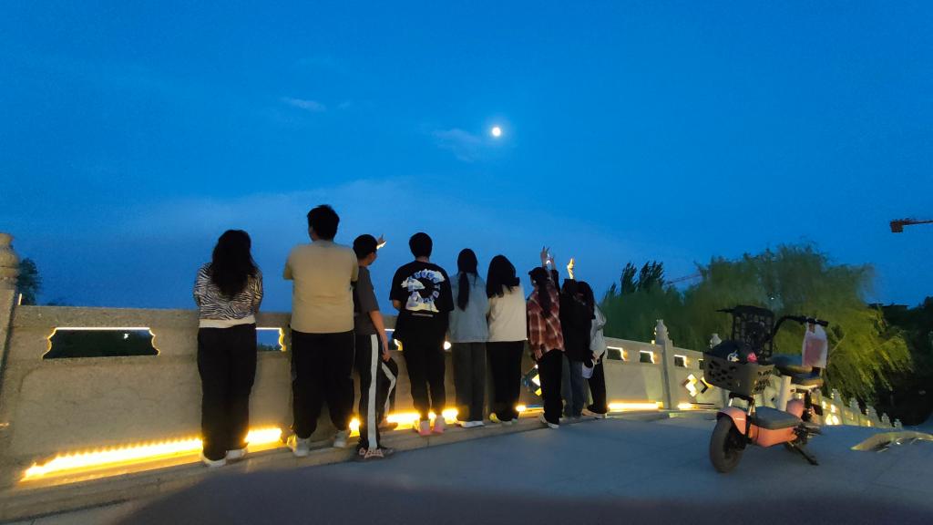 当天下午参加团建活动的老师和学生在校门口集合点名后便出发了。此次出行是步行前往,沿着学院门口的将军河一路向东行走,一路上他一言你一语充满了欢声笑语,途中,老师组织学生拍摄沿途风光,让学生互相分享自己视角中最美的光影,并用一句诗句进行描绘,其中张帆同学吟诵道:“大漠孤烟直,长河落日圆”;刘仕泽也感慨道:“两竿落日溪桥上,半缕轻烟柳影中”。
