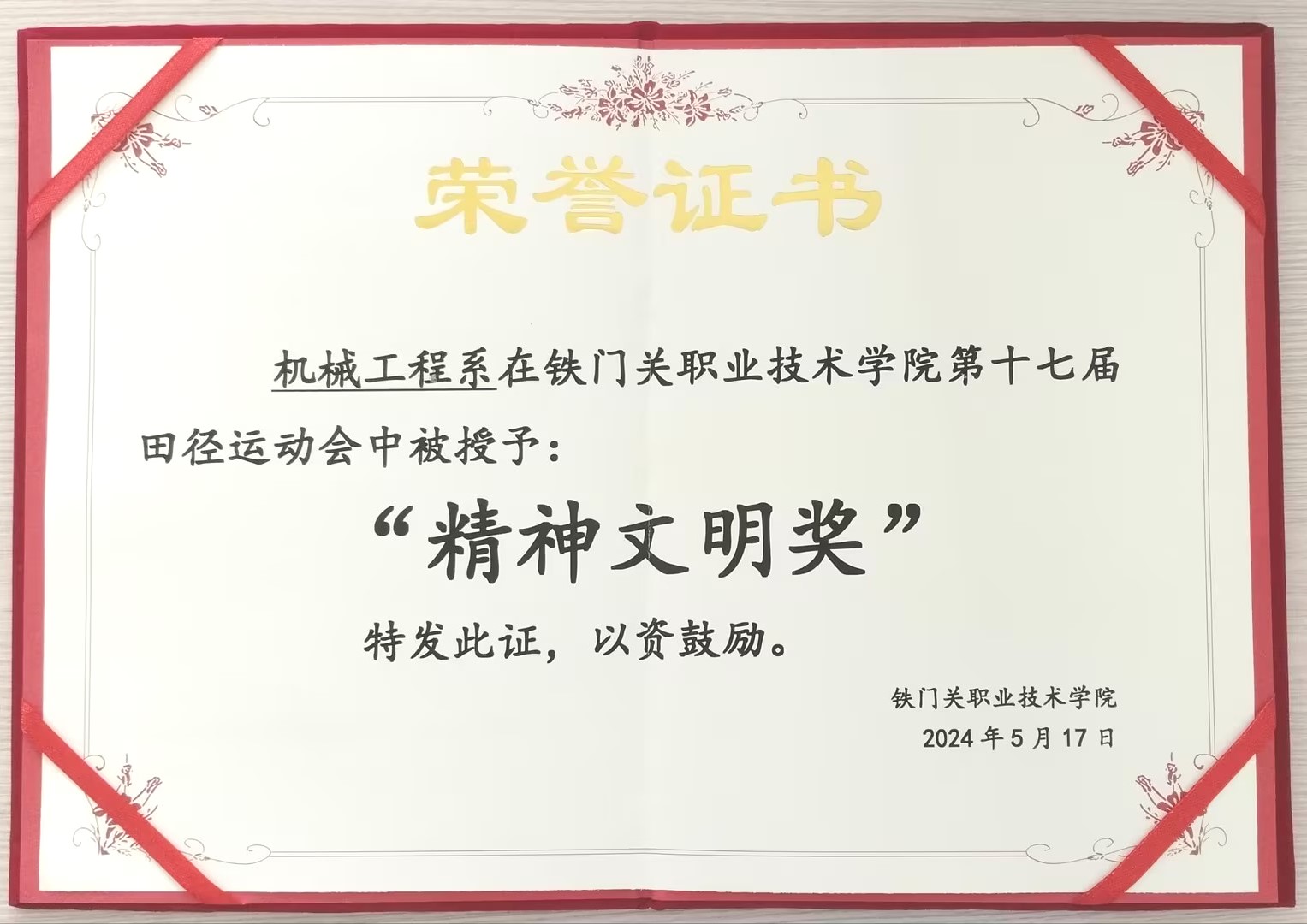 5月17日,Beat365中文官方网站库尔勒校区第十七届田径运动会暨第九届教职工趣味运动会圆满闭幕。在这场体育竞技中,机械工程系的青年学子们意气风发,争创辉煌,展现了积极向上的精神风貌,共获得金牌3个,银牌5个,铜牌1个,机械工程系获“精神文明奖”。