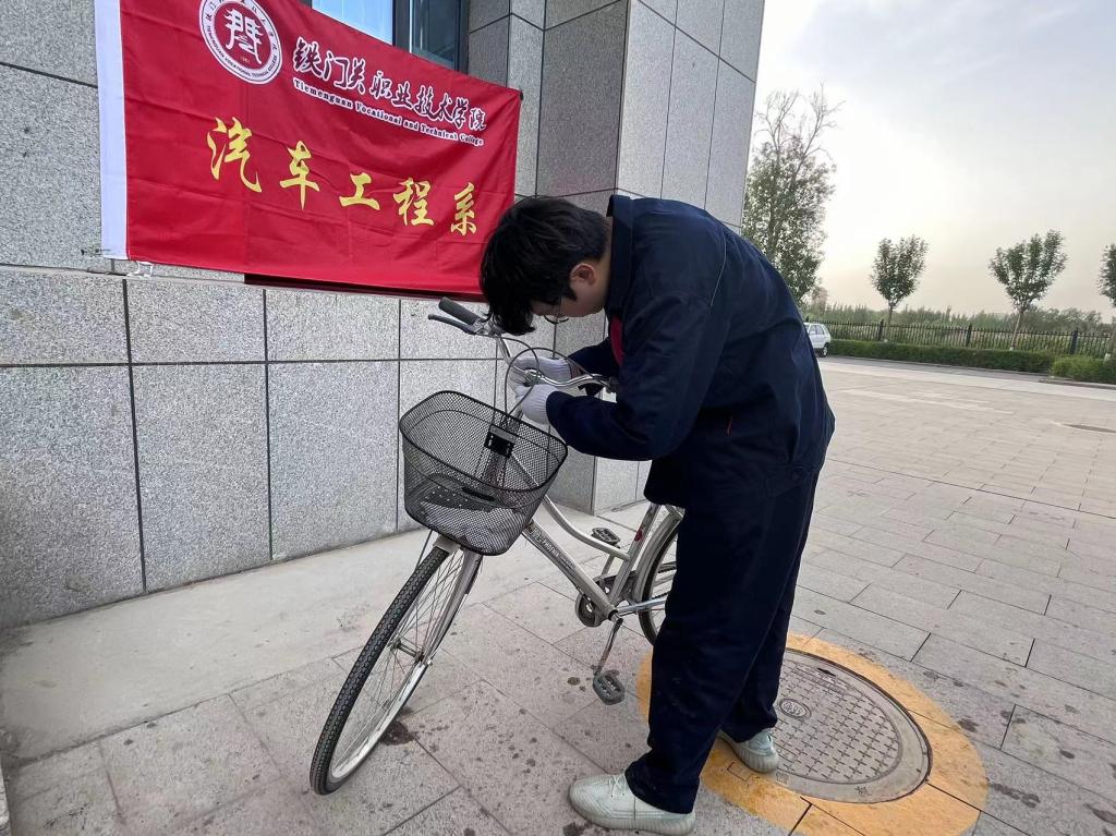 活动现场,王老师一行5人为自行车和电动车进行了清洗、润滑、调整,使其处于最佳状态。学子们热情高涨,纷纷拿出看家本领。他们仔细检查车辆的各项性能,从轮胎到刹车,从座椅到车链再到支架,每一处细节都不放过。遇到复杂的维修问题,他们相互协作,共同探讨解决方案。经过几天的辛勤努力,40余辆自行车、电动车的故障得到了及时修复。