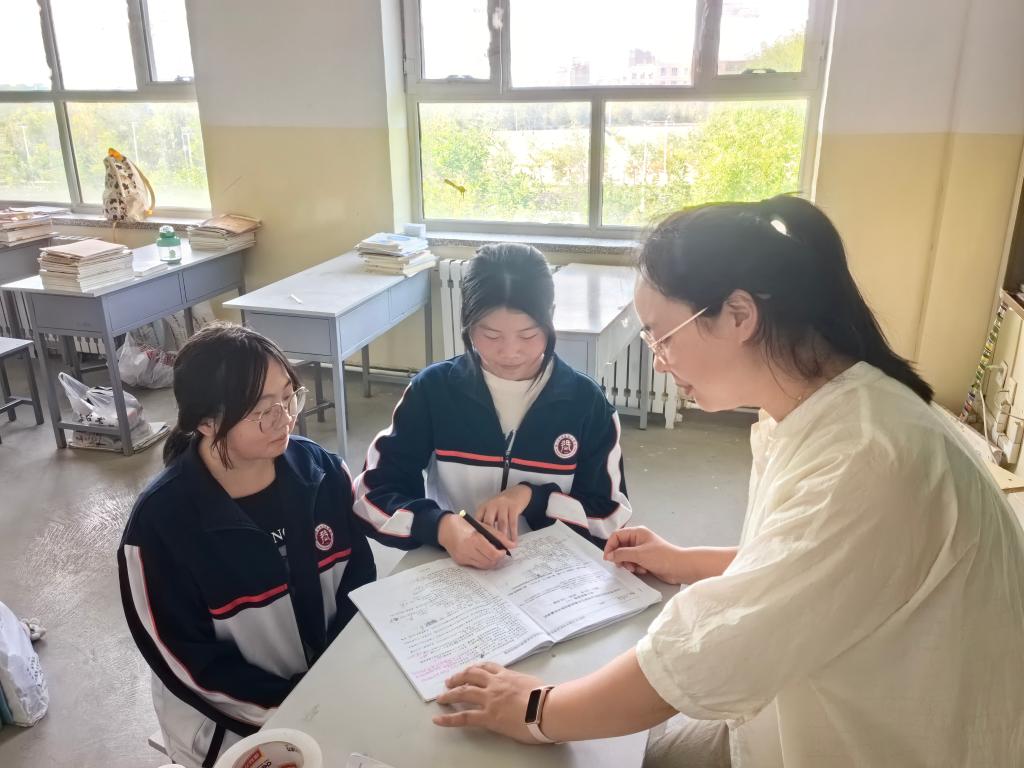 教室内,学生正在争分夺秒的复习中,任课教师不忘点拨讲授难题、重点题的应考策略和答题方法,大家都在为最后阶段备考冲刺做准备。