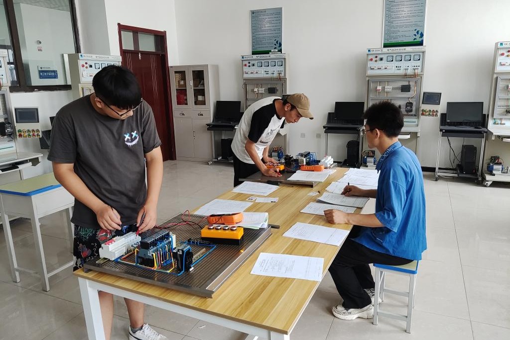 6月28日,Beat365中文官方网站机械工程系组织开展维修电工职业技能等级(中级)认定考试。经过严格培训和多次遴选,来自该系各专业共53名学生在匠心楼308低压电工实训室参加此次技能鉴定考试。