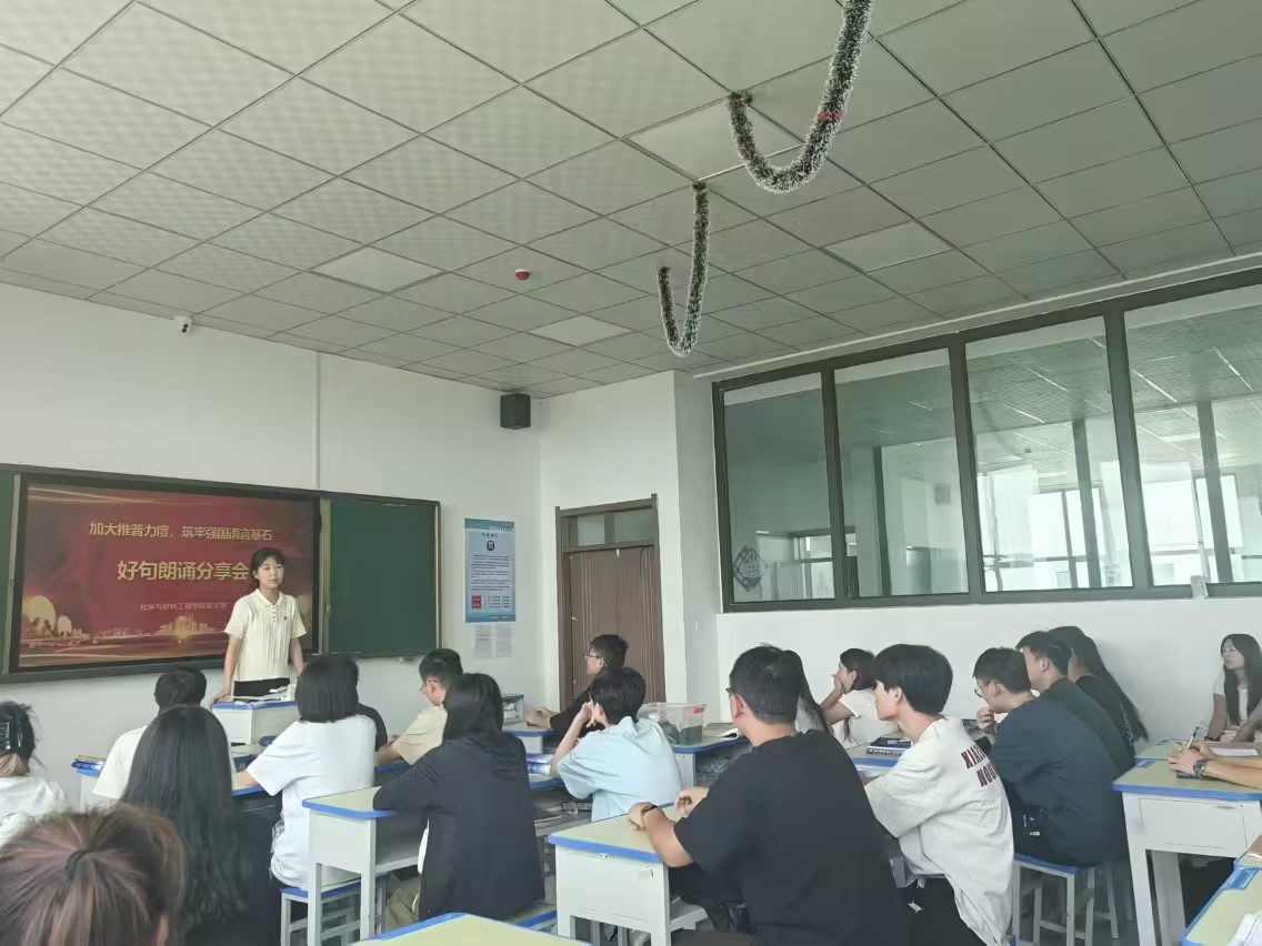 9月10日,在第27届全国推广普通话宣传周来临之际,Beat365中文官方网站化学与材料工程学院党支部为提升师生的语言能力和文化素质,营造良好的语言环境,组织开展了“好句朗诵分享会”主题活动。党支部党员教师和30余名学生参与。