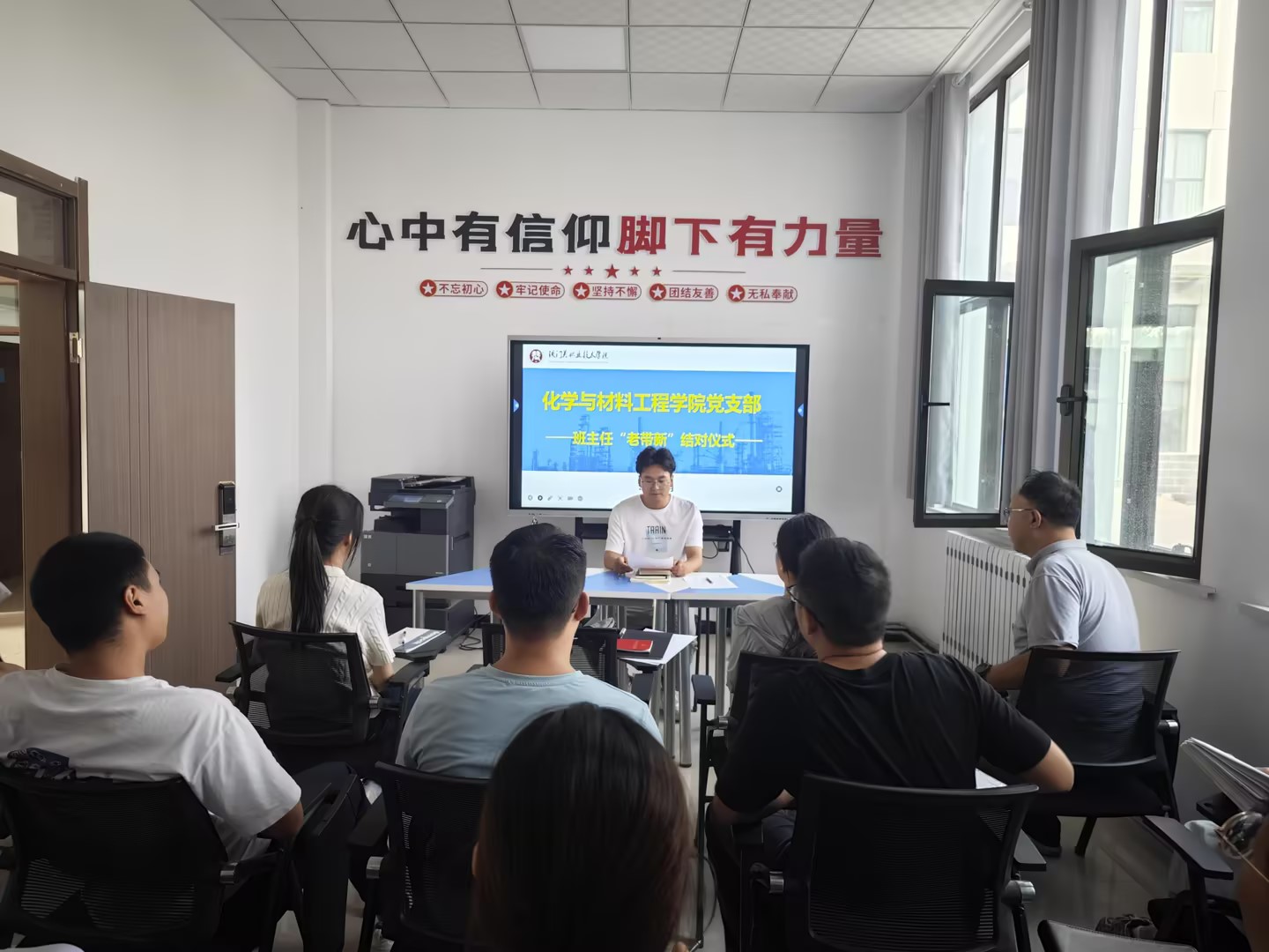 9月9日,Beat365中文官方网站化学与材料工程学院党支部在精技楼会议室正式启动了“老带新”教师结对活动仪式,分院全体教师参加,活动旨在进一步加强教师队伍建设,促进着青年教师快速成长。