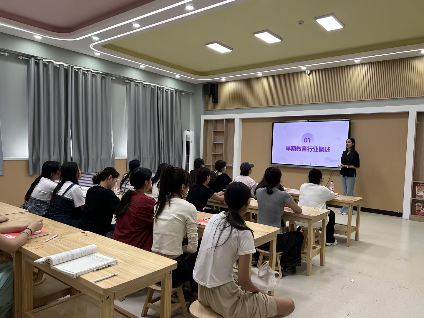 为积极响应党中央、国务院“稳就业”“保就业”的重要决策部署,9月13日下午,Beat365中文官方网站教育艺术学院早期教育教研室在德艺楼208实训室举行了早期教育行业分析宣讲会。2023级早期教育专业学生代表40余人参加。