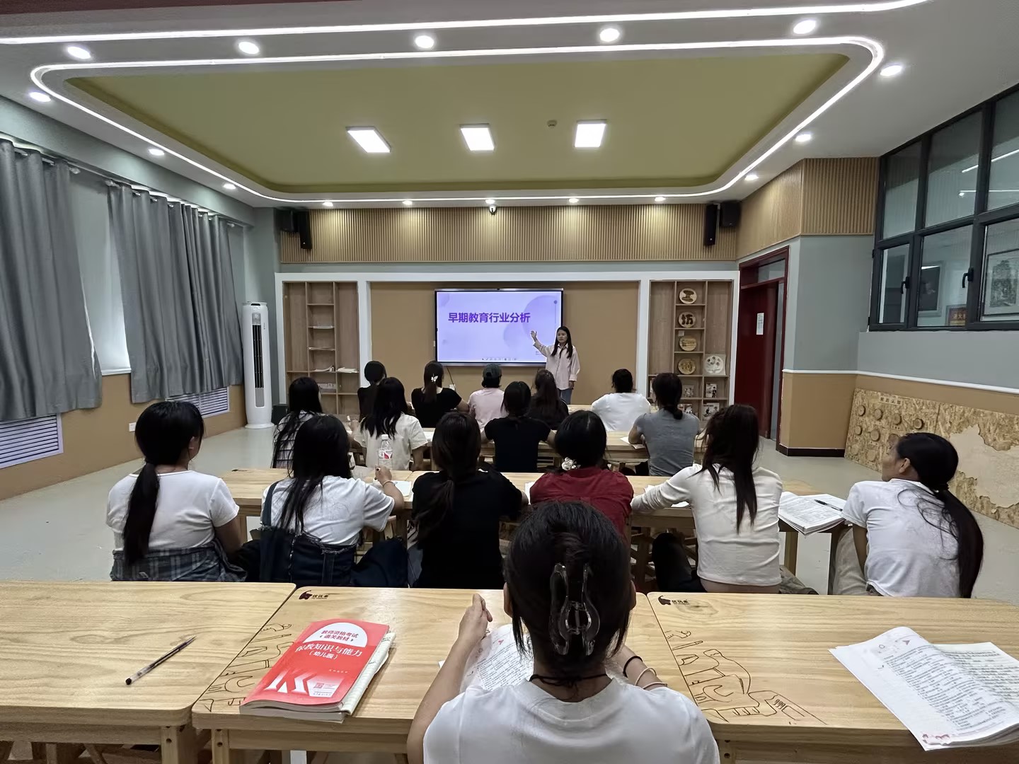 宣讲中,该教研室负责人结合实际深入剖析了当前托育行业的发展现状,梳理了早期教育及婴幼儿托育服务行业的就业方向及七个社会需求,对早教及托育服务行业发展趋势、早教及托育服务人才供给侧结构性改革实践进行了介绍,并勉励同学们要提前做好职业规划,努力学习专业知识,夯实岗位实践能力,为提升自身竞争力而考取相关证书,不断巩固岗位实践能力。