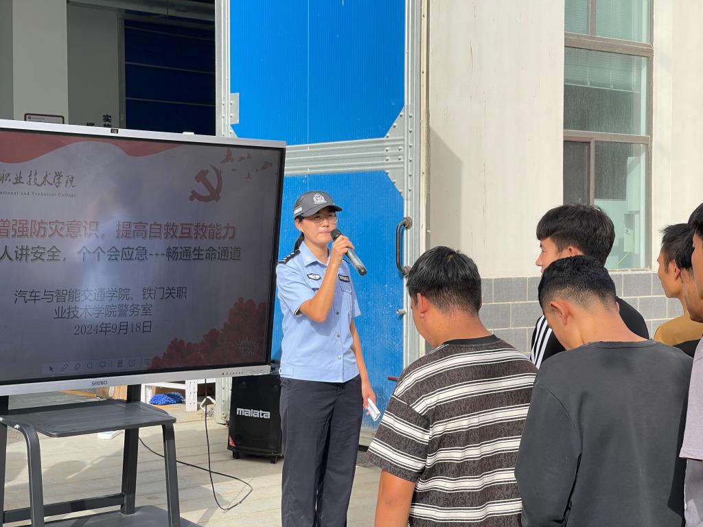 活动前期,学院安全员李安老师在汽车实训楼联合学生会、校园警务室等多个部门,制定了周密的演练方案,校园警务室李警官对汽车与智能交通学院师生进行了系统的消防安全知识培训。培训内容涵盖了火灾预防措施、火场逃生技巧、初期火灾扑救方法以及自救互救技能等,为演练做好充足的准备。