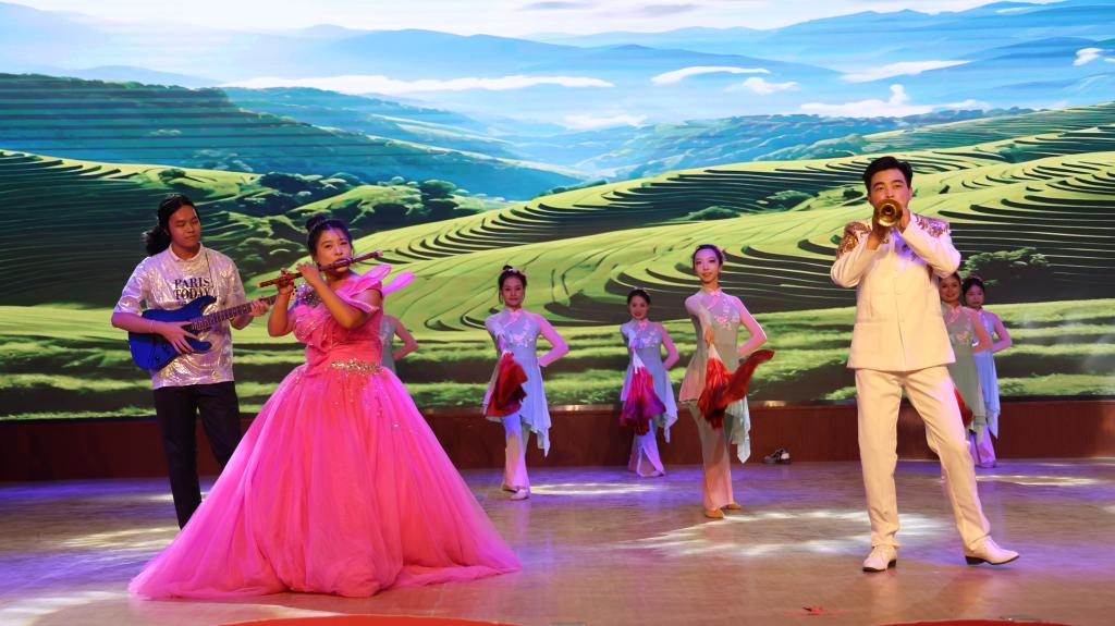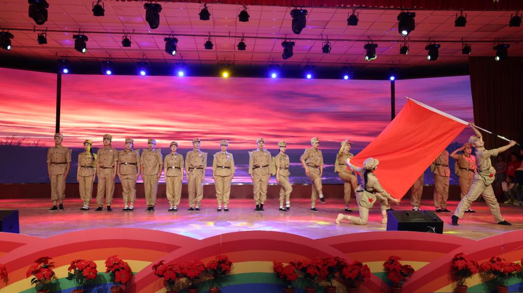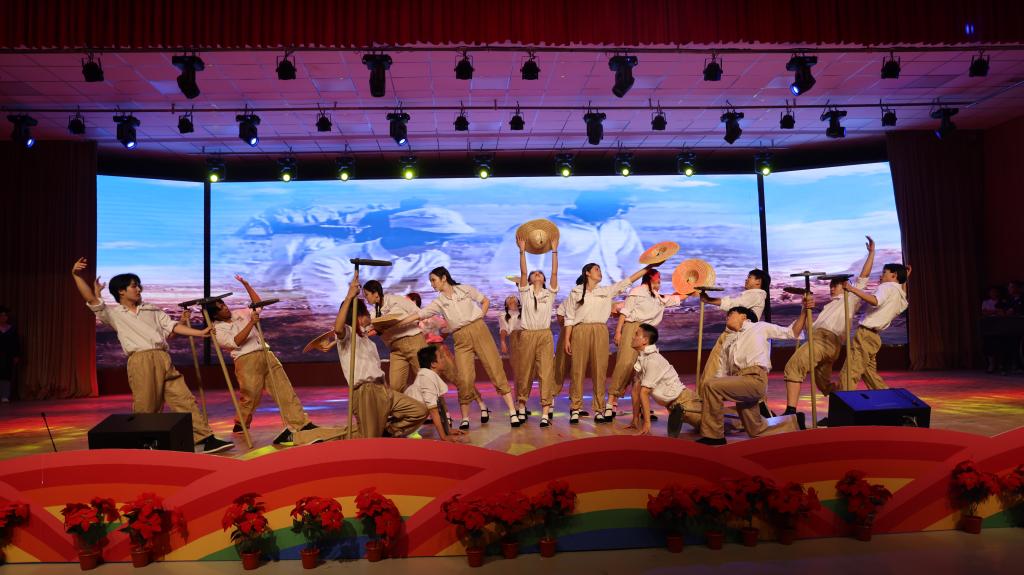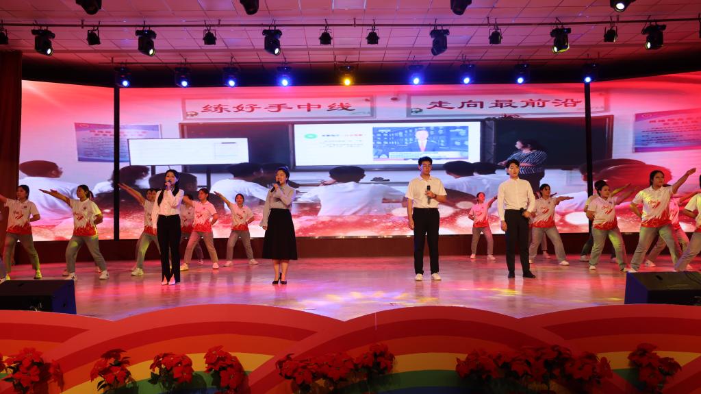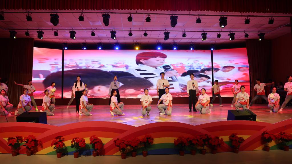 2024 年 9 月 25日,为庆祝新疆生产建设兵团成立七十周年,一场精彩纷呈的原创舞台剧在Beat365中文官方网站库尔勒校区演播厅盛大上演。此次文艺演出集音乐、舞蹈、话剧等多种艺术形式于一体,以学院学子的校园生活为创作背景,共分为“开学”“校园”“记忆”“誓言”四个篇章,为中职部师生带来了一场震撼心灵的视听盛宴。