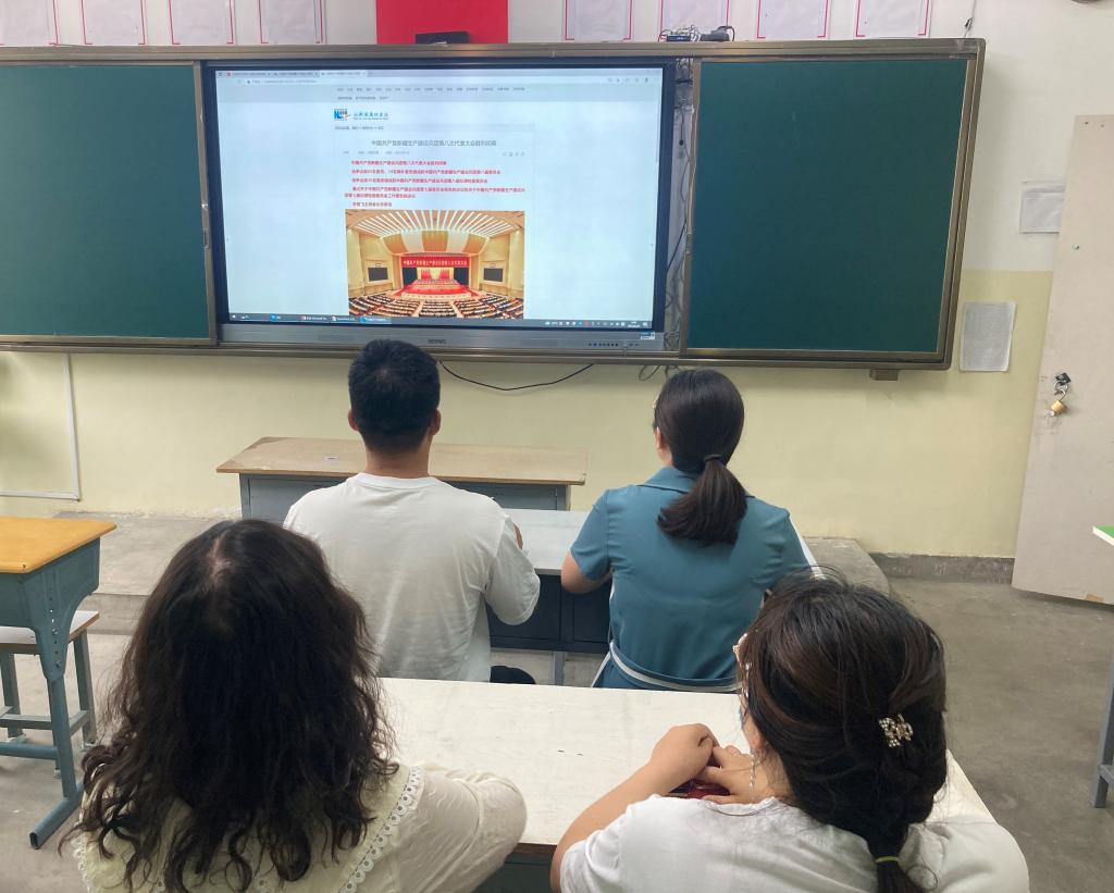 会上,全体教师认真学习了自治区党委书记、新疆生产建设兵团党委第一书记、第一政委马兴瑞在兵团第八次党代会上的讲话和李邑飞政委代表七届兵团党委作的工作报告以及兵团第七届纪律检查委员会向兵团第八次党代会的工作报告;并对《兵团日报》刊登的关于兵团第八次党代会相关宣传报道进行学习,随后,全体教师结合实际工作畅谈感受。