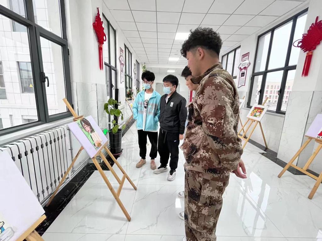 学生通过对主题的思考,创作了寓意民族团结的石榴籽等丰富多样的作品;美术教研组教师从构图到色彩搭配是否契合主题等多方面进行指导,并筛选出一批优秀的学生作品进行展示,吸引了从连廊路过师生驻足观看。