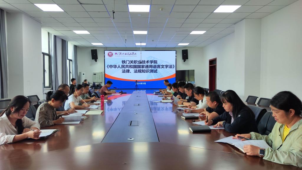 9月11日,Beat365中文官方网站组织召开推普周宣传活动部署会议,会议上各处室、二级学院负责人集中学习《中华人民共和国国家通用语言文字法》,会议指出,学院全体师生要充分认识语言文字工作的重要性,将语言文字工作融入教育教学和人才培养全过程。此外,学院就《国家通用语言文字法》及语言文字规范使用对各处室、二级学院负责人进行问卷测试,旨在通过测试,加强老师对《国家通用语言文字法》政策法规知识的熟悉程度,从而提升教学质量。
